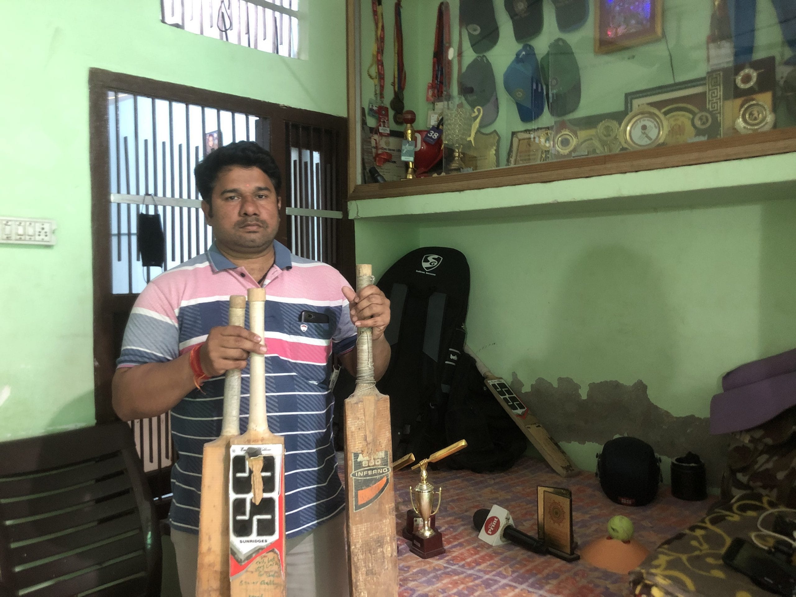 Verma’s house in Rohtak, which also accommodates his shop, is full of the young cricketer’s numerous trophies. The family has also preserved her first three bats in a display case.