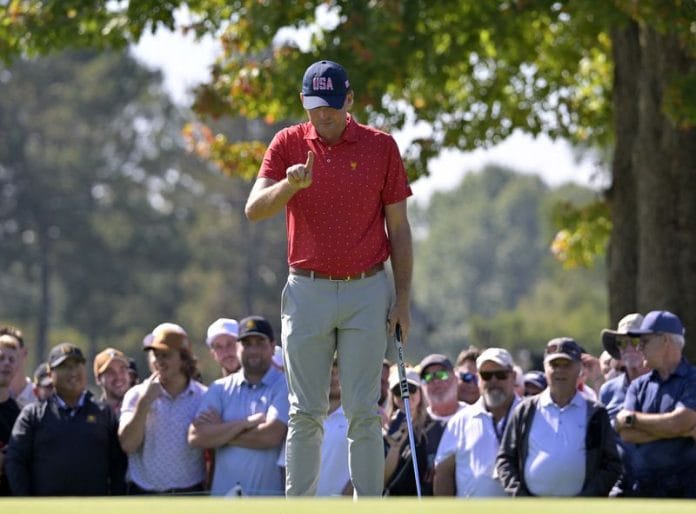 The U.S. needed 4-1/2 points from 12 singles matches and wins for Xander Schauffele, Russell Henley and Patrick Cantlay along with a half-point from Sam Burns set the stage for U.S. Ryder Cup captain Bradley, who beat Kim 1-up with five other matches on the course.