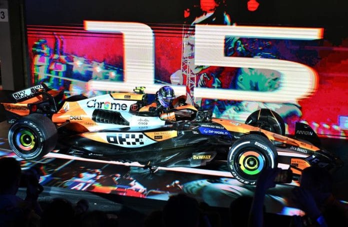 SINGAPORE (Reuters) – Lando Norris raced to a dominant victory in Sunday’s Singapore Grand Prix but he made sure his McLaren bosses stayed on the edge of their seats until the chequered flag after two close encounters with the wall.