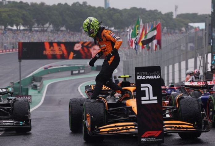 SAO PAULO (Reuters) – McLaren’s Lando Norris took an emphatic pole position at the Sao Paulo Grand Prix on Sunday after Red Bull rival Max Verstappen qualified only 17th in a wet and crash-strewn session at Interlagos.