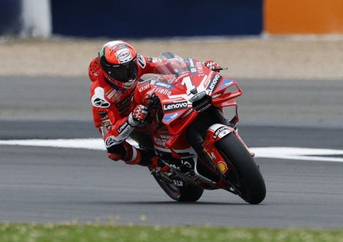 Having clinched pole with a lap record after going fastest in qualifying, Martin was slow getting away when the lights went out while Bagnaia turned on the aggression as soon as he shot off the line.
