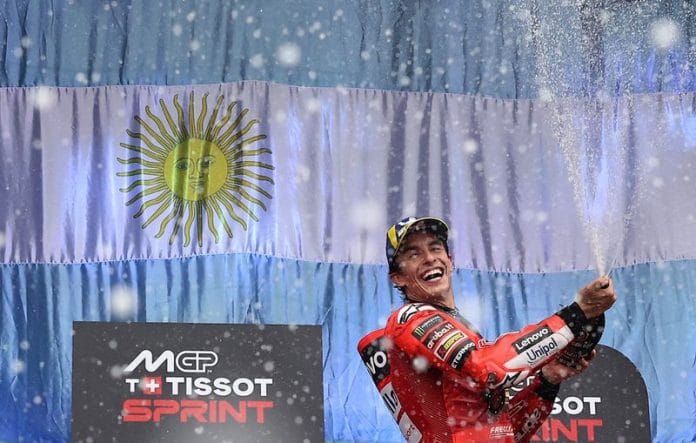 TERMAS DE RIO HONDO, Argentina (Reuters) – Ducati’s red-hot Marc Marquez won the Argentina Grand Prix on Sunday after trailing his brother Alex for much of the race as the pair finished in the top two yet again while VR46 Racing’s Franco Morbidelli was third.