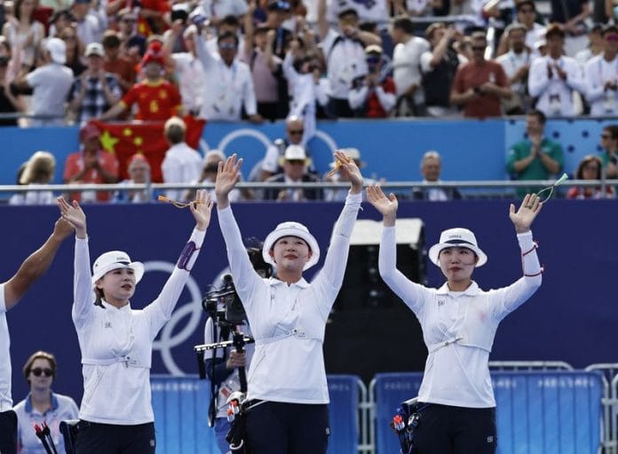 PARIS (Reuters) – South Korea won their 10th consecutive gold medal in women’s team archery in a nail-biting shoot-off as their three first-time Olympians held off China 5-4 at the Paris Games on Sunday.