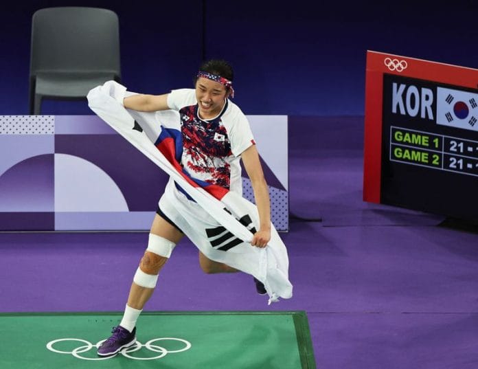 PARIS (Reuters) -South Korea’s An Se-young beat He Bingjiao of China 21-13 21-16 to capture the badminton women’s singles Olympic gold medal, while Denmark’s Viktor Axelsen defeated Kunlavut Vitidsarn of Thailand, 11-21 11-21, to successfully defend the men’s title.