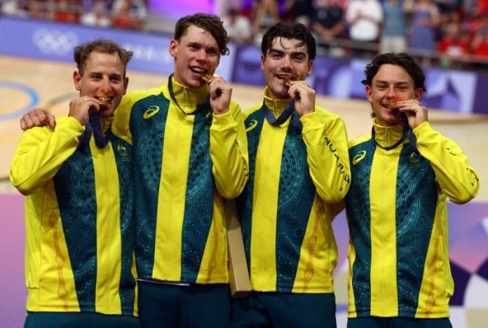 SAINT QUENTIN-EN-YVELINES, France (Reuters) – Three years after a snapped handlebar cost Australia the chance of Olympic gold at the Tokyo velodrome, two riders from that men’s team pursuit squad savoured the Paris gold with new teammates on Wednesday.