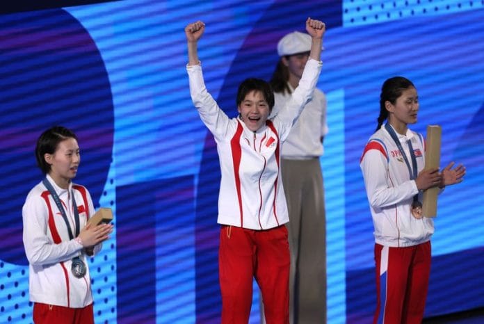 Quan retained her Tokyo title on 425.60 points from teammate Chen Yuxi who again won silver. North Korea’s Kim Mi Rae took the bronze.