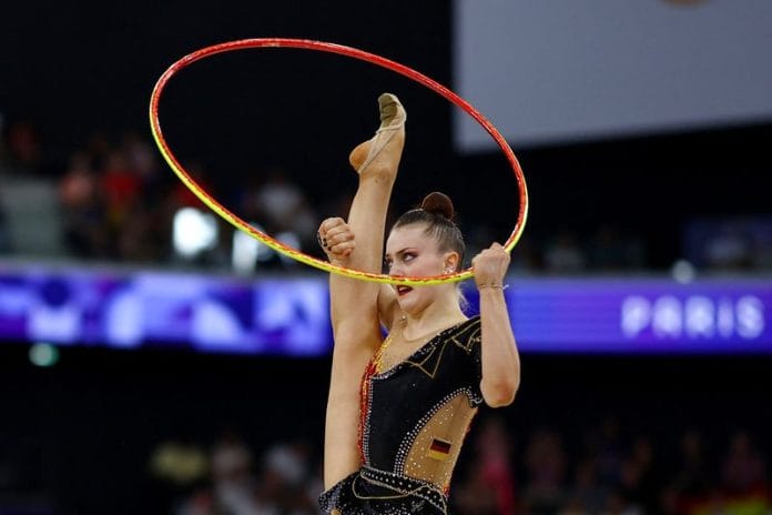 PARIS (Reuters) – Before striding on to the Olympic rhythmic gymnastics platform to perform her hoop routine, Germany’s Margarita Kolosov took a breath, squared her shoulders and flung a small towel to the floor.