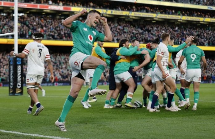 DUBLIN (Reuters) – Ireland completed their fourth ever Six Nations Grand Slam with a 29-16 victory over England at the Aviva Stadium on Saturday, emphatically underlining their status as the world’s top ranked team heading into September’s World Cup.