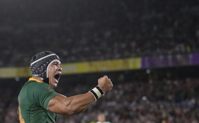 Team: 15-Cheslin Kolbe, 14-Kurt-Lee Arendse, 13-Jesse Kriel, 12-Damian de Allende, 11-Makazole Mapimpi, 10-Damian Willemse, 9-Jaden Hendrikse, 8-Jasper Wiese, 7-Pieter-Steph du Toit, 6-Siya Kolisi (captain), 5-Lood de Jager, 4-Eben Etzebeth, 3-Frans Malherbe, 2-Malcolm Marx, 1-Steven Kitshoff