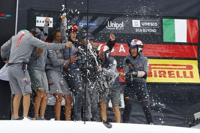 There were huge celebrations among the Italian team of four after they crossed the line in their AC40 foiling monohull, with an eight second win over the British in the 18 minute race.