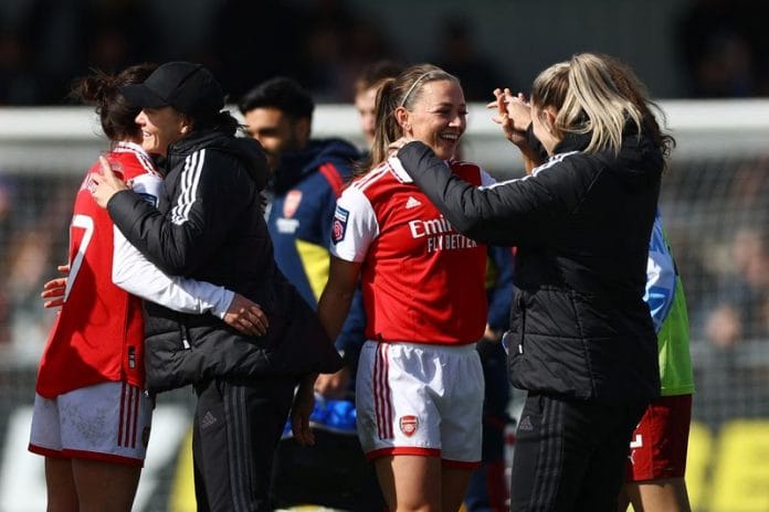 LONDON (Reuters) – Katie McCabe scored the winner with a powerful strike as Arsenal came from a goal down at home to beat Manchester City 2-1 but Chelsea rose above them to second spot in the Women’s Super League later on Sunday after a 3-0 win over Aston Villa.