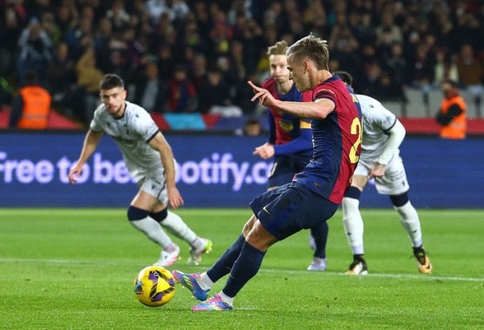 Olmo converted a penalty to score his seventh league goal of the season before limping off the pitch in the 28th minute as leaders Barcelona extended their lead over second-placed Real Madrid to three points.
