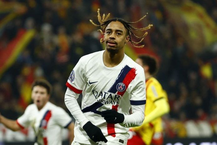 LENS, France (Reuters) – A late goal from Bradley Barcola earned Paris St Germain a 2-1 victory at Lens on Saturday to keep the French champions well clear at the top of the Ligue 1 standings.