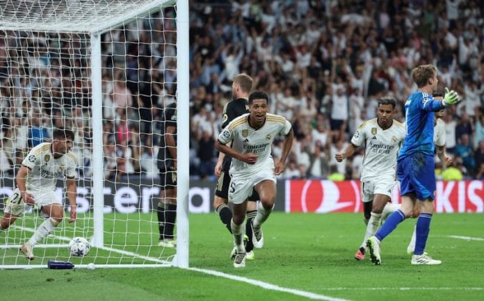 MADRID (Reuters) -Jude Bellingham scored deep in added time as Real Madrid wore down a resilient Union Berlin to claim a 1-0 win at the Santiago Bernabeu in their Group C opener on Wednesday, spoiling the Bundesliga side’s Champions League debut.
