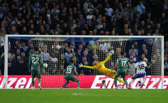 BRIGHTON (Reuters) – Brighton & Hove Albion staged a storming second-half comeback with Danny Welbeck sealing a 3-2 home win over Tottenham Hotspur in a topsy-turvy Premier League clash on Sunday.