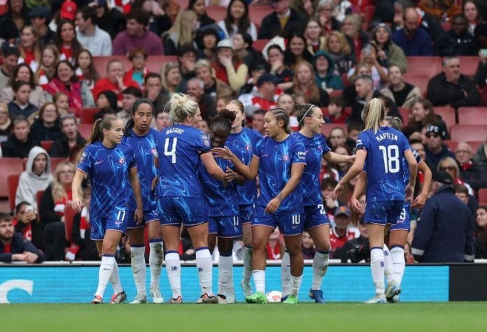 LONDON (Reuters) – Chelsea’s Mayra Ramirez and Sandy Baltimore scored early goals to help their side beat Arsenal 2-1 at the Emirates Stadium on Saturday and move top of the Women’s Super League, landing an early blow to the Gunners’ title hopes.