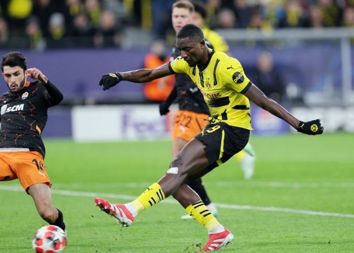(Reuters) – Borussia Dortmund cruised through to the knockout phase play-offs of the Champions League with a 3-1 home win over Shakhtar Donetsk on Wednesday, with Guinean striker Serhou Guirassy grabbing two first-half goals as the Ukrainian side were eliminated.