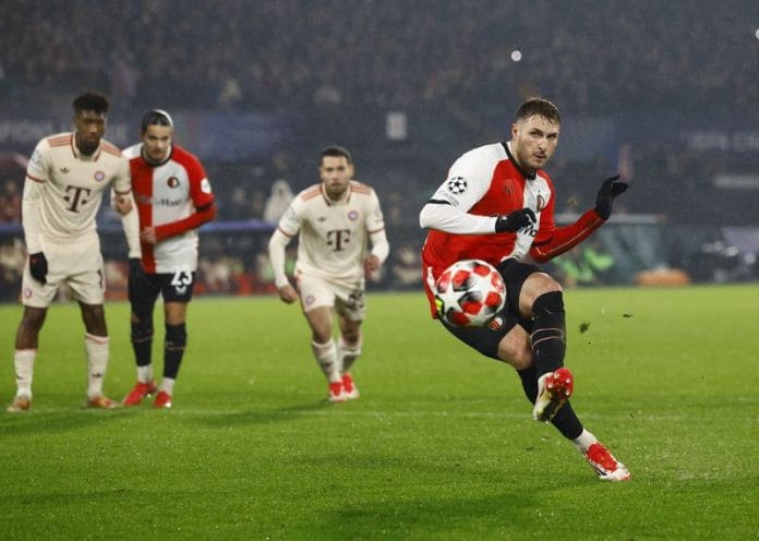 ROTTERDAM, Netherlands (Reuters) – Feyenoord striker Santiago Gimenez scored twice in the first half to steer the hosts to a 3-0 victory over Bayern Munich in the Champions League on Wednesday and boost their chances of a top-eight finish on the last matchday next week.