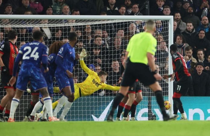 The Stamford Bridge faithful were stunned into silence in the 67th minute when Semenyo rounded 18-year-old defender Josh Acheampong and sent a near-post rocket past keeper Sanchez.