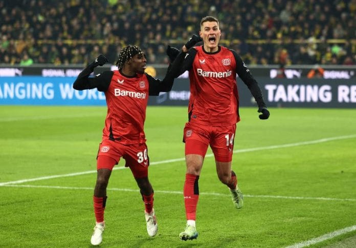 DORTMUND, Germany (Reuters) -Champions Bayer Leverkusen battled past hosts Borussia Dortmund 3-2 with two goals from Patrik Schick on Friday to move within a point of leaders Bayern Munich with a sixth straight league win.