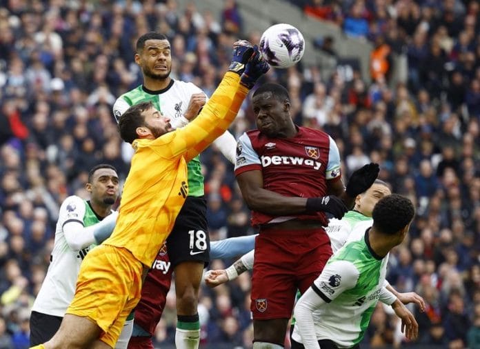 (Reuters) – Liverpool’s slim title hopes took another huge blow with a 2-2 draw at West Ham United on Saturday, while bottom team Sheffield United’s relegation was confirmed with a 5-1 thrashing at Newcastle United on a pivotal day in the Premier League.