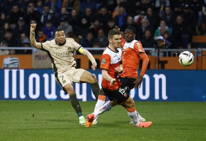(Reuters) – Paris St Germain closed in on a record-extending 12th Ligue 1 title as Ousmane Dembele and Kylian Mbappe each scored twice in a 4-1 away victory against second-from-bottom Lorient on Wednesday.