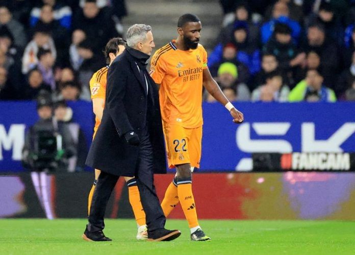 (Reuters) – Real Madrid defender Antonio Rudiger is set for a spell on the sidelines after suffering a hamstring injury in a 1-0 defeat by Espanyol on Saturday, the LaLiga club said ahead of a crucial week in their season.
