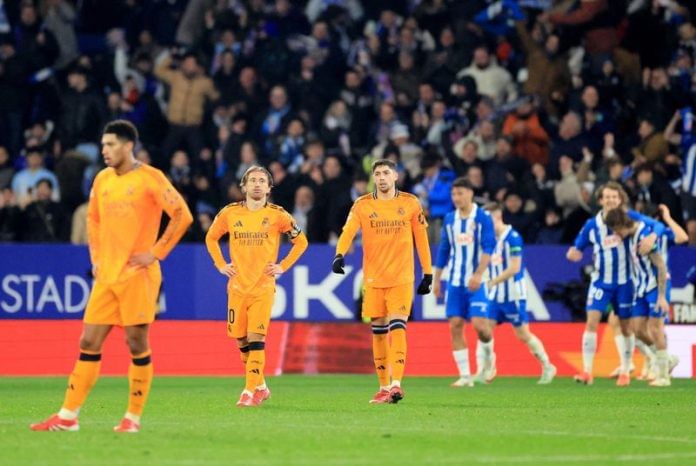 BARCELONA, Spain (Reuters) -LaLiga leaders Real Madrid were stunned at lowly Espanyol on Saturday after losing 1-0 thanks to a late Carlos Romero strike.