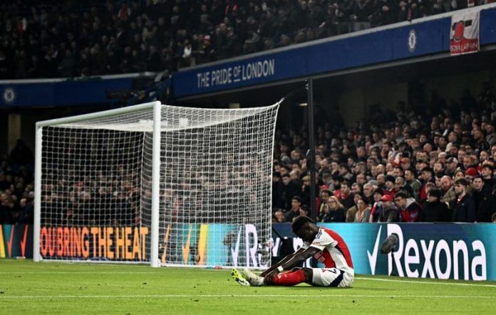 LONDON (Reuters) – Arsenal manager Mikel Arteta has two new worries to add to what he describes as a nightmare run of injuries after Bukayo Saka and Declan Rice both failed to finish the 1-1 draw with Chelsea in the Premier League on Sunday.