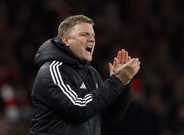 LONDON (Reuters) – Newcastle United manager Eddie Howe urged caution despite a 2-0 victory at Arsenal on Tuesday, putting his in-form side within touching distance of a place in the League Cup final.