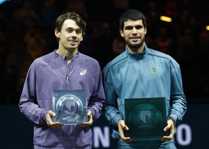 ROTTERDAM, Netherlands (Reuters) -World number three Carlos Alcaraz claimed his first indoor title when he beat Australian third seed Alex de Minaur 6-4 3-6 6-2 in the Rotterdam Open final on Sunday.