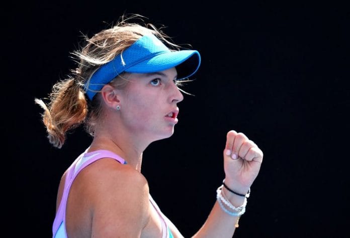 MELBOURNE (Reuters) – Czech teenager Linda Fruhvirtova marched into the fourth round of the Australian Open on Saturday with a battling 7-5 2-6 6-3 victory over compatriot Marketa Vondrousova.