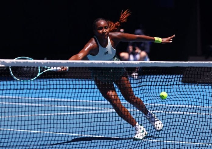 MELBOURNE (Reuters) – Coco Gauff was given a solid workout by former champion Sofia Kenin but continued her lengthy winning streak to reach the second round of the Australian Open with a 6-3 6-3 victory on Rod Laver Arena on Monday.