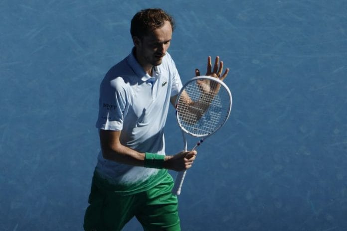 MELBOURNE (Reuters) – Daniil Medvedev destroyed his racket and a net camera in a mid-match meltdown as he survived a huge scare against Thai wildcard Kasidit Samrej to reach the Australian Open second round on Tuesday.