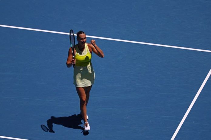 MELBOURNE (Reuters) – Defending champion Aryna Sabalenka shrugged off a shaky display to fight her way into the fourth round of the Australian Open with a 7-6(5) 6-4 victory over Clara Tauson on Friday.