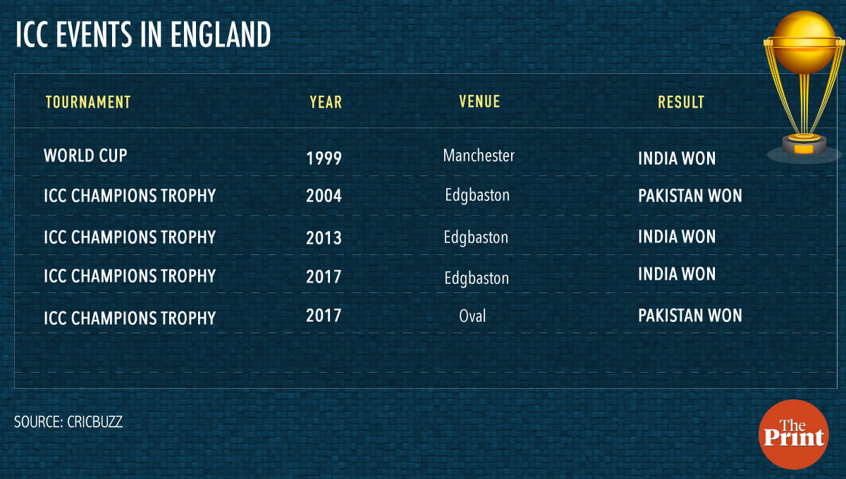 India has won all six matches between the two sides in the quadrennial tournament and coincidentally, the last time the two sides played a world cup match in England, it was at Old Trafford in 1999. The match, played in the backdrop of the Kargil conflict, saw India win by 47 runs in a low-scoring encounter.
