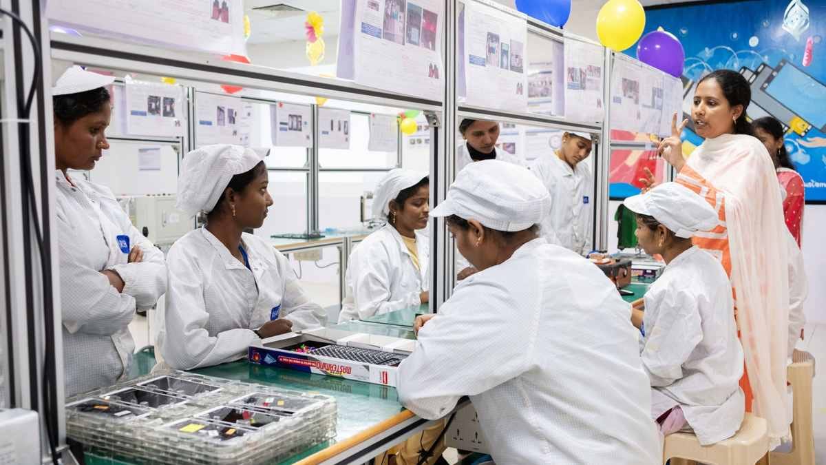 After gobbling down a free breakfast of chapatti flatbreads with a potato-and-pea curry, she dons a checked white hat, apron-shirt, static-resistant footwear and tiny finger gloves. Then Jayadas takes her place at a testing station where she will spend the next eight hours making sure the volume, vibration and other phone features work properly. “Smartphones used to be all made in China,” she says. “Now, we make them here.”