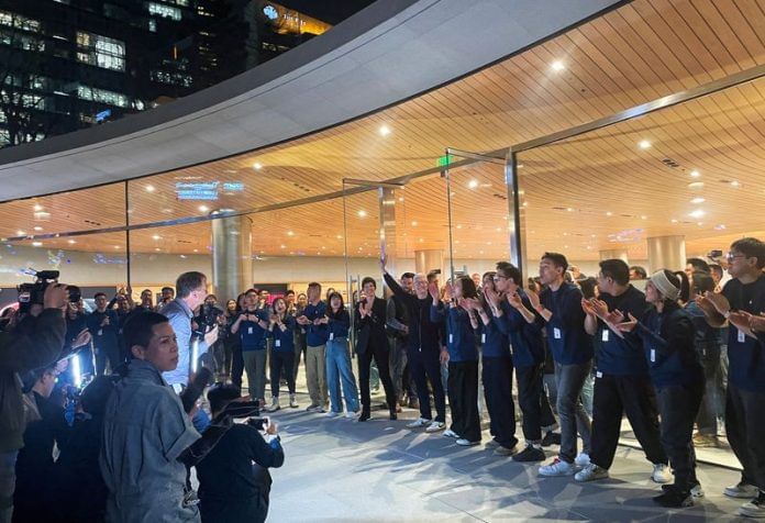 Cook, who was accompanied by Deidre O’Brien, Apple’s senior vice president of retail and people, did not make any public remarks at the store. The store opening drew hundreds of people, with Chinese police stepping in to manage the crowd.