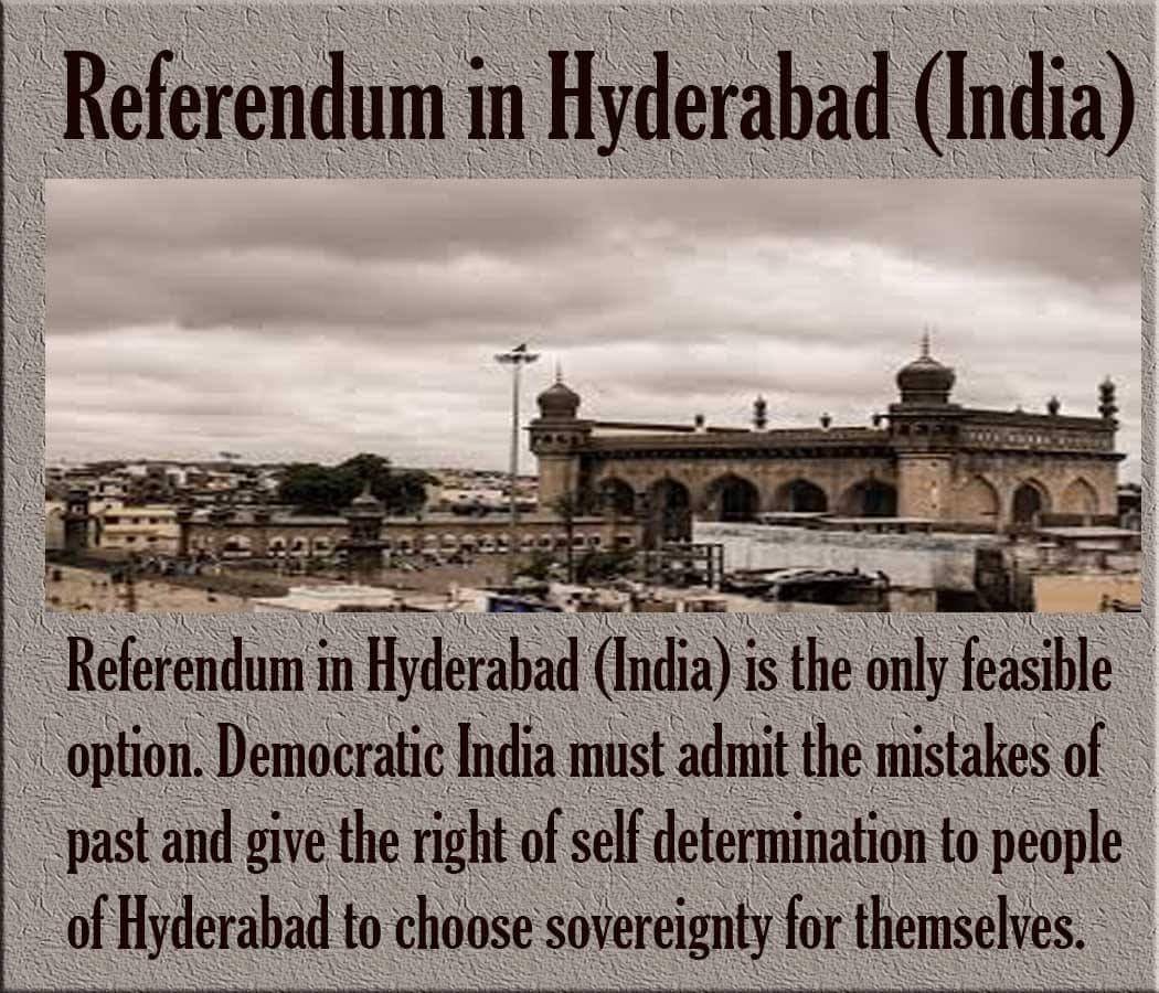 “Referendum in Hyderabad (India) is the only feasible option. Democratic India must admit the mistakes of past and give the right of self determination to people of Hyderabad to choose sovereignty for themselves,” said one post.