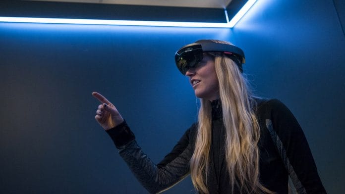 Lockheed Martin Corp. recently adopted Microsoft’s HoloLens for manufacturing spacecraft. Donning what looks like a pair of heavy duty safety goggles with a black band wrapping around the head, a technician can use images projected onto the lenses to mark the locations for 309 fasteners to be attached to a curved panel. When the technician or the panel moves, the computer adjusts.
