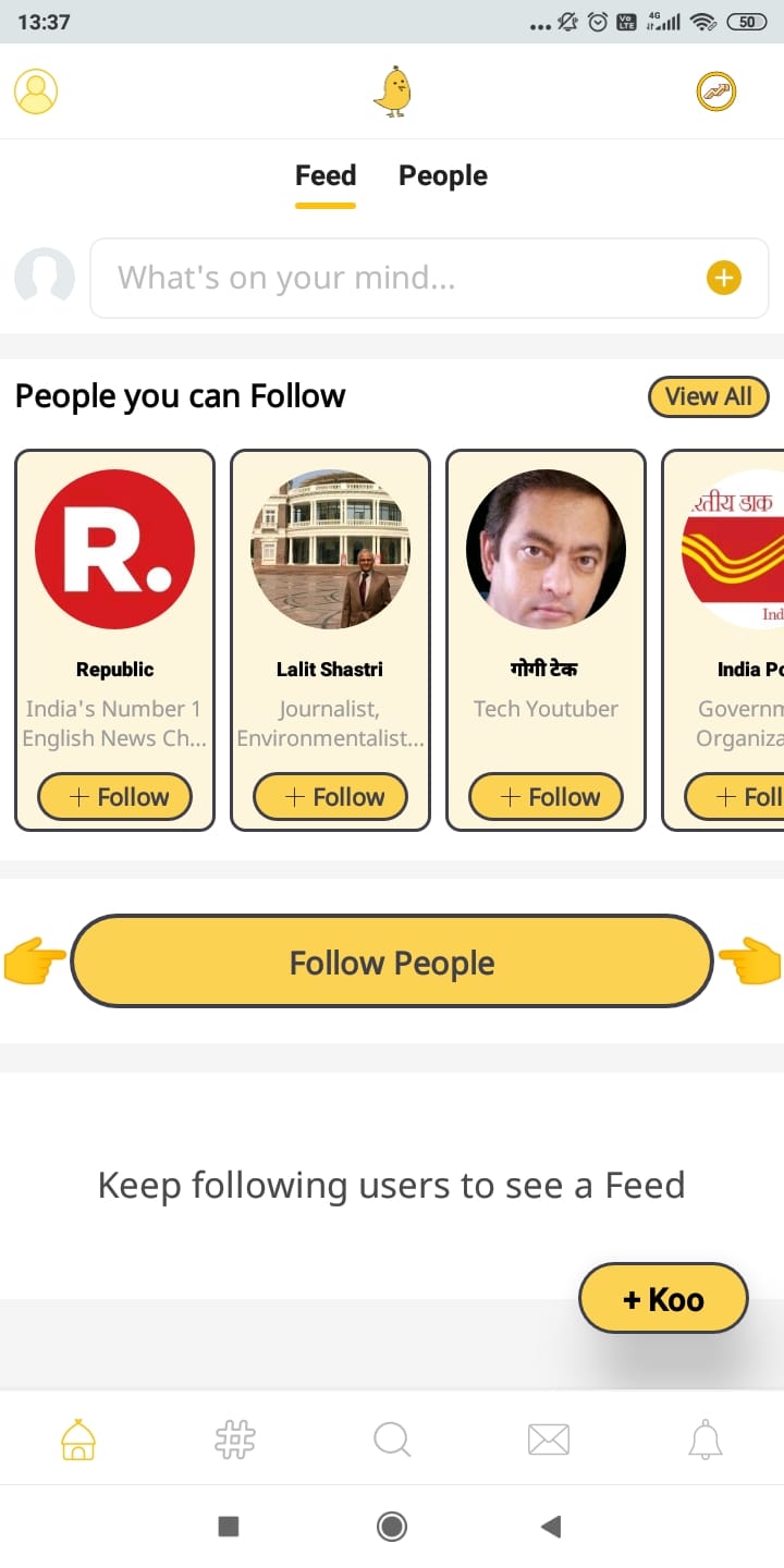 But the top account the Indian app is recommending on the site is journalist Arnab Goswami’s news media network, Republic TV, which had called for an editorial partnership with Koo last year.