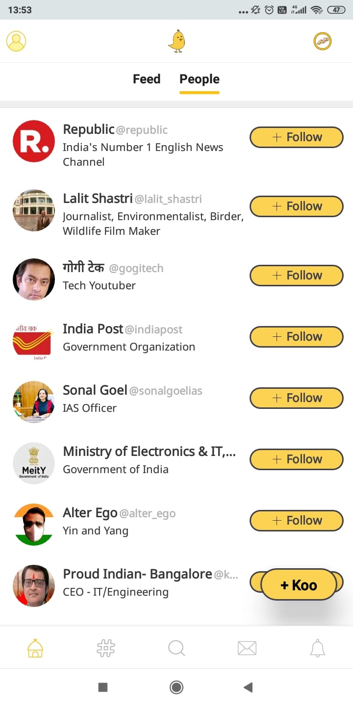 On its home page, the app suggests users to follow on the site. In this list, Republic TV is at the top. Government-run India Post is at number four, Sonal Goel, described as an IAS officer, is five and the Ministry of Information and Technology is six.