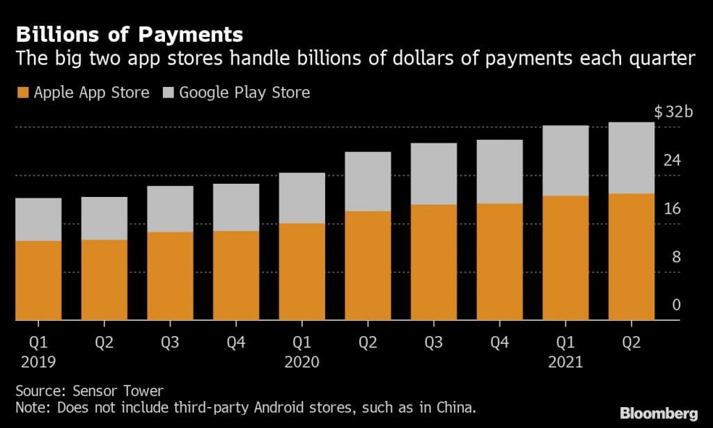 The revenue streams in question are central to profit growth for both Apple and Google. The iPhone maker’s App Store feeds broader efforts to grow income from services and subscriptions, producing around $20 billion annually, according to Sensor Tower. Google’s Android is booming in user numbers as India’s population gets online with the help of mobile devices, and app fees are a key way the company monetizes its otherwise free software.