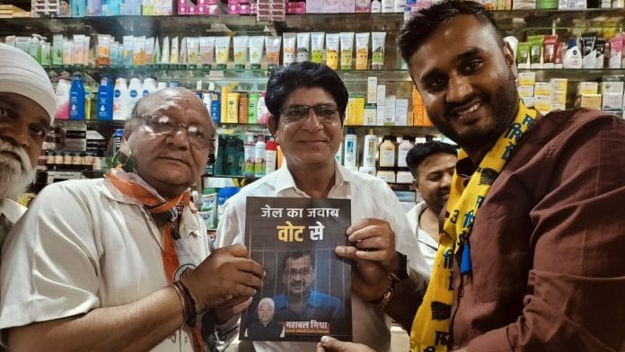 A group of 10 AAP workers surveyed the area of Aaya Nagar on a Sunday evening. Their target was to cover 100-150 houses in the colony. They went from house-to-house putting up stickers of Kejriwal on windows and gates. Some miffed voters tore the stickers apart, others hugged the campaigners and expressed distress over Kejriwal’s arrest.