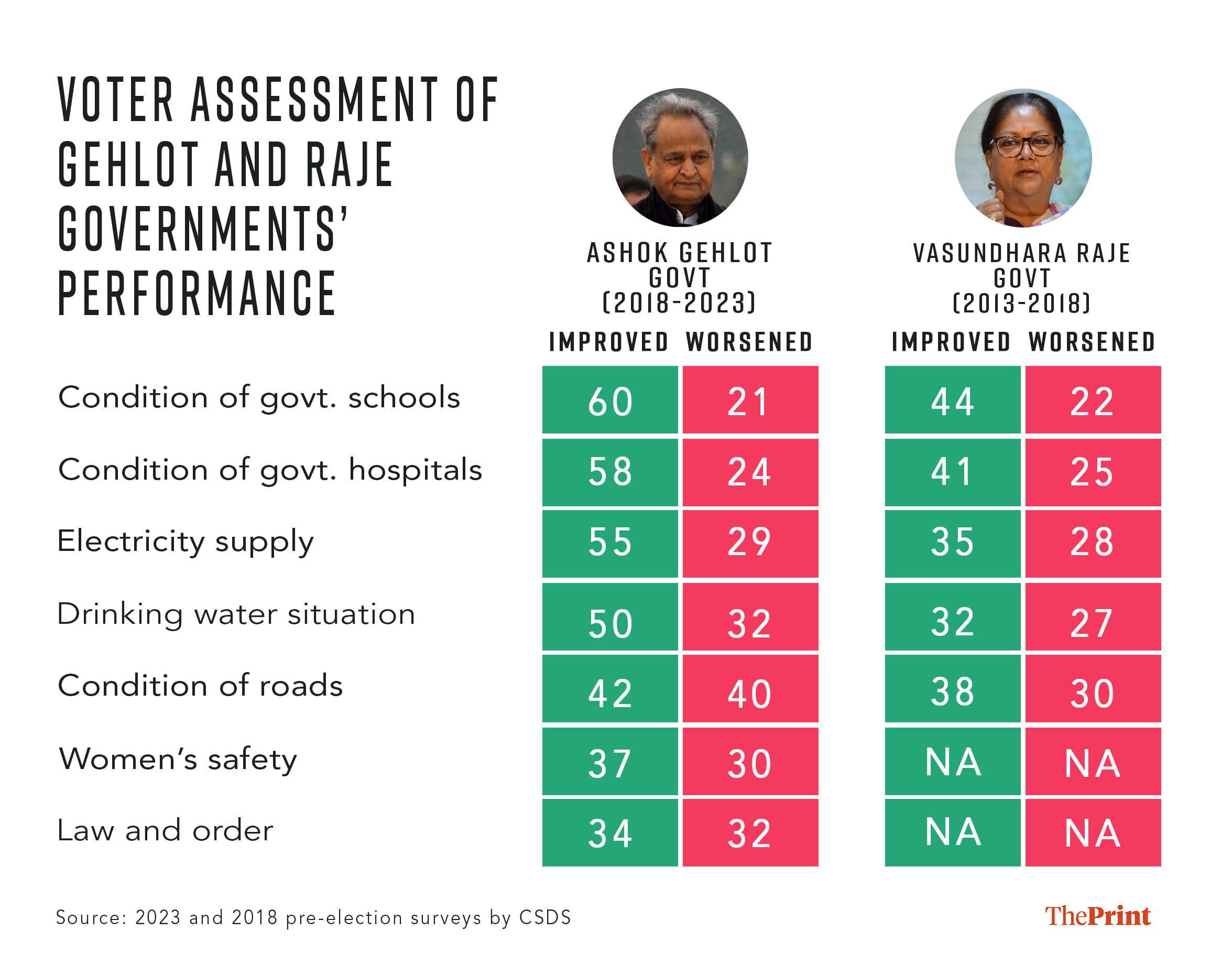 Table 1 shows that this Gehlot government’s ratings are better than those of his own government in 2013 and 2003, Raje’s government in 2008, and even Bhairon Singh Shekhawat’s BJP government in 1998.