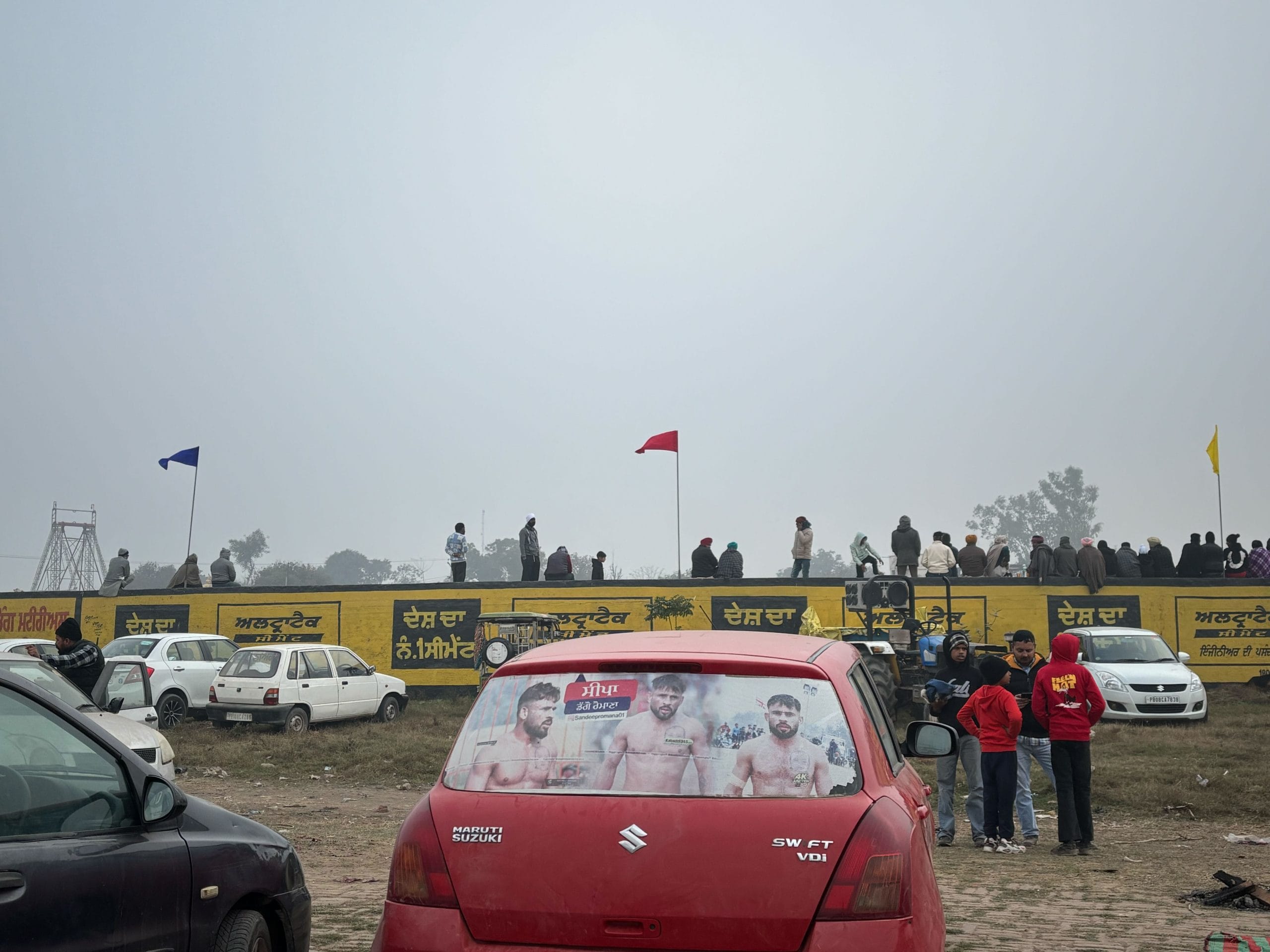 Pasted on windshields are blown up and edited photographs of kabaddi stars, alongside posters of singer Siddhu Moosewala and Lakha Sidhana.