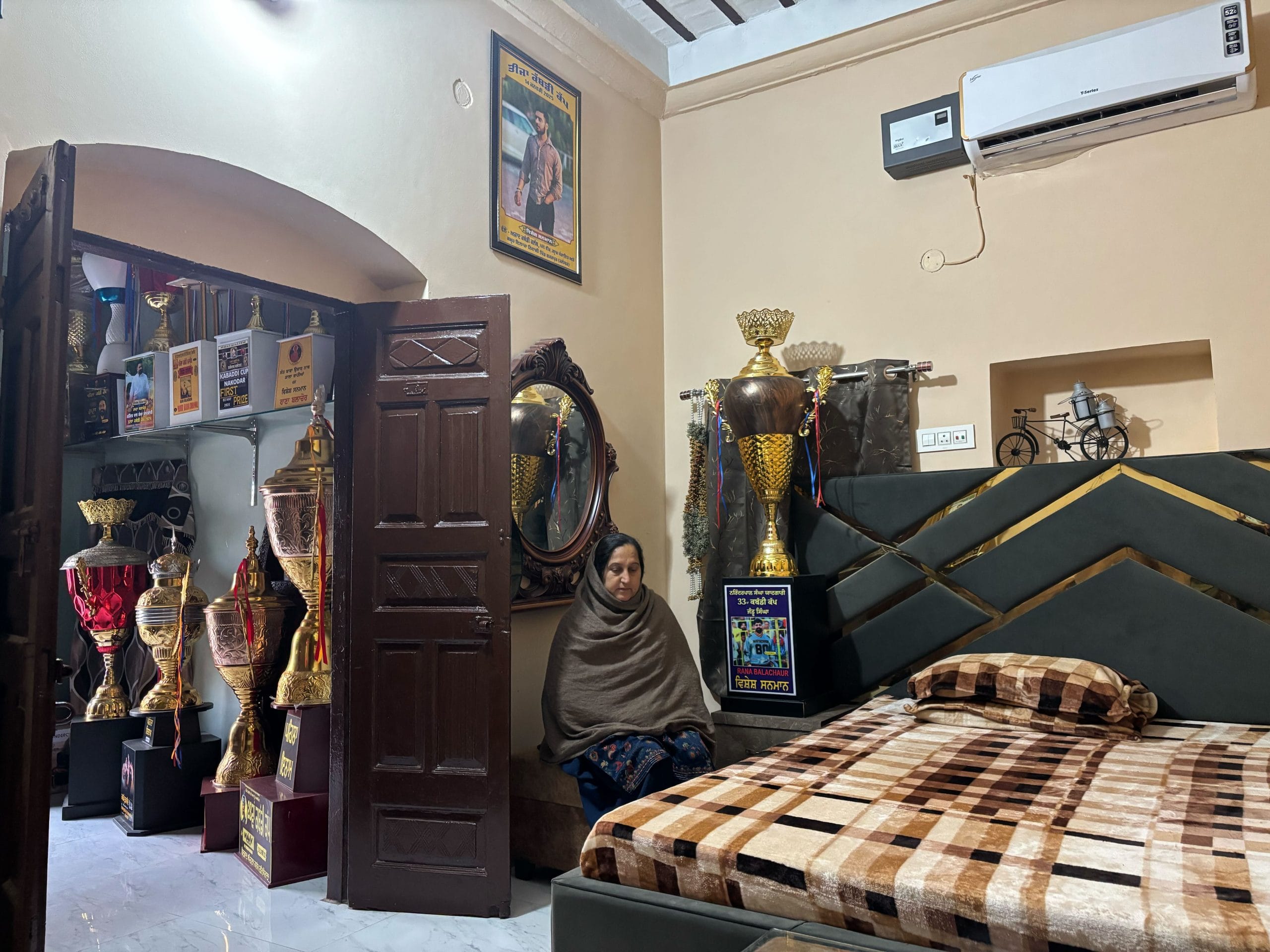 “In Punjab, they used to say if you want to save your children from ‘chitta,’ then send them to play kabaddi,” said Jaswinder Kaur, wiping her tears, her eyes fixed on the trophies. “Now kabaddi has turned dangerous, where do we send our children now?”