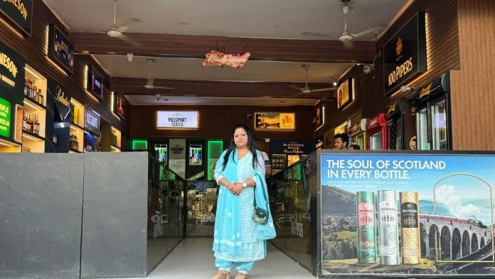 Noida/Ghaziabad: Kalpana Aggarwal, 42 has a new name — the “Liquor Queen” of Indirapuram, Ghaziabad. Amid the bustling malls, branded clothing stores, and busy roads, her “model liquor shop” stands out with her name emblazoned at the entrance. Every time a customer enters the store, they stare at Aggarwal with confusion – a woman running a liquor store, they murmur.