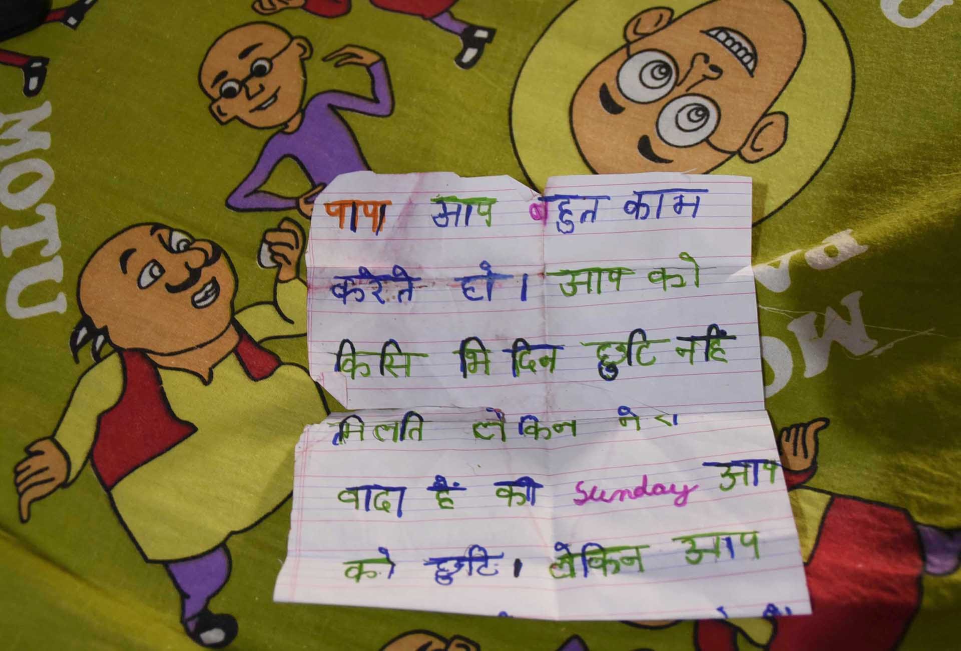 Because his father would be working most days, Pradyuman decided to write a letter to him. “Dad, you work a lot. You don’t get holidays, but I promise you that on Sunday, you will have a holiday.”