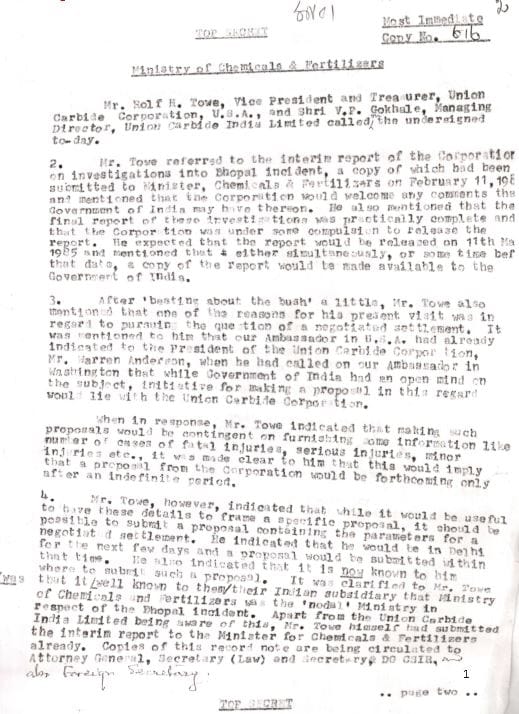 Some documents were obtained from RTIs, provided by Rachna Dhingra, the Bhopal Group for Information Action.